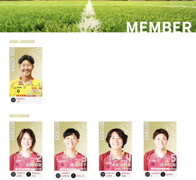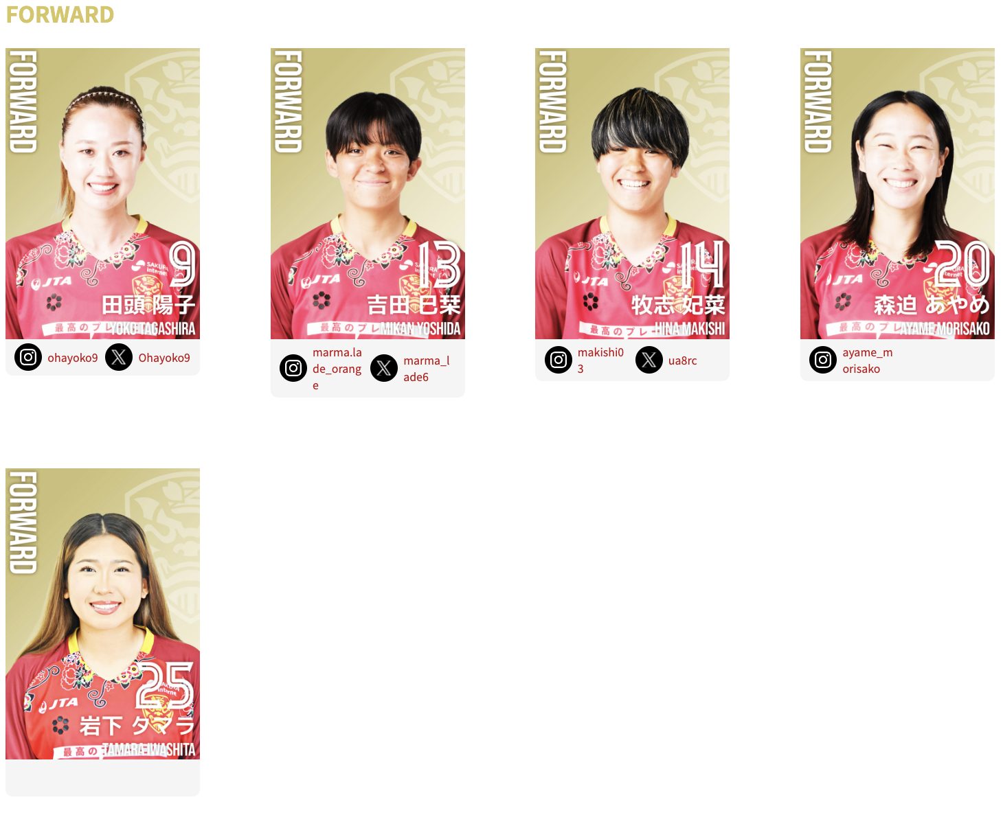 FC琉球さくらの選手たちに与えられたミッションは、選手紹介ページをリデザインし、各選手に異名をつけることです。こちらが現在(2025年9月時点)の選手紹介ページです。このページをどのようにデザインしていくのでしょうか。