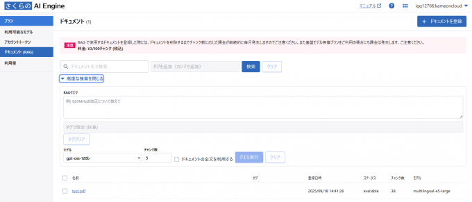さくらのAI Engine ことはじめ(1):基本(チャット)機能とRAG、MCPによる自然言語検索