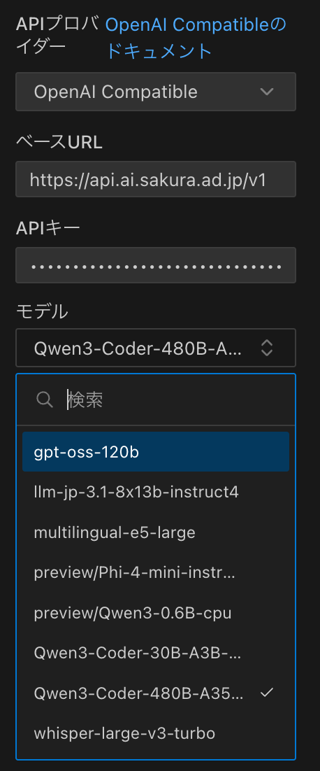 さくらのAI Engineでは、Base URLにhttps://api.ai.sakura.ad.jp/v1を設定すれば正しく動作しますが、他のプロバイダーを併用する場合は、この点に留意してください。