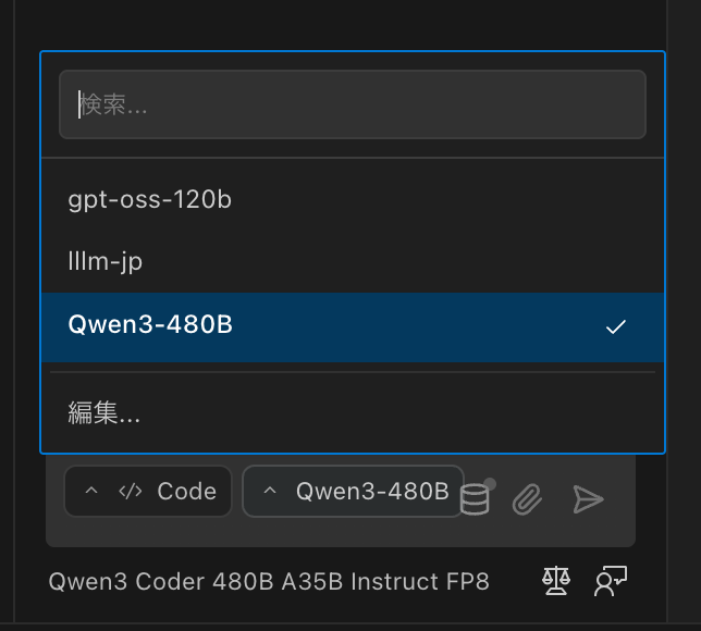まずModelを選択します。ここではQwen3-480Bを選択しています。