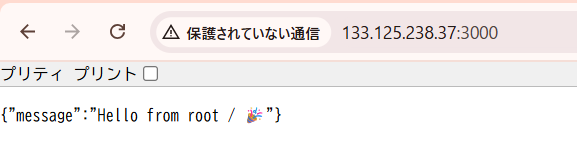 node server.js で起動した後ブラウザでIPアドレスのポート3000番(http://xxx.xxx.xxx.xxx:3000/)に直接アクセスします。