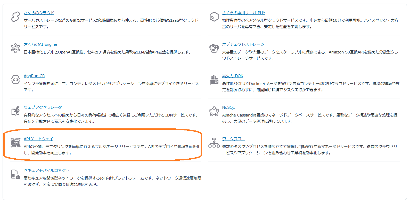 さくらのクラウド ホーム画面からAPIゲートウェイをクリックします。