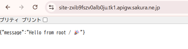 上記の手順で指定したルートで設定したホストにブラウザでアクセスします(ブラウザからのアクセスは自動で GET になります)。サービスで対象サーバのIPアドレスとポート3000番を指定しているため、ホスト名:ポート80番へのアクセスは自動的に対象サーバのIPアドレス:ポート3000番へルーティングされます。
