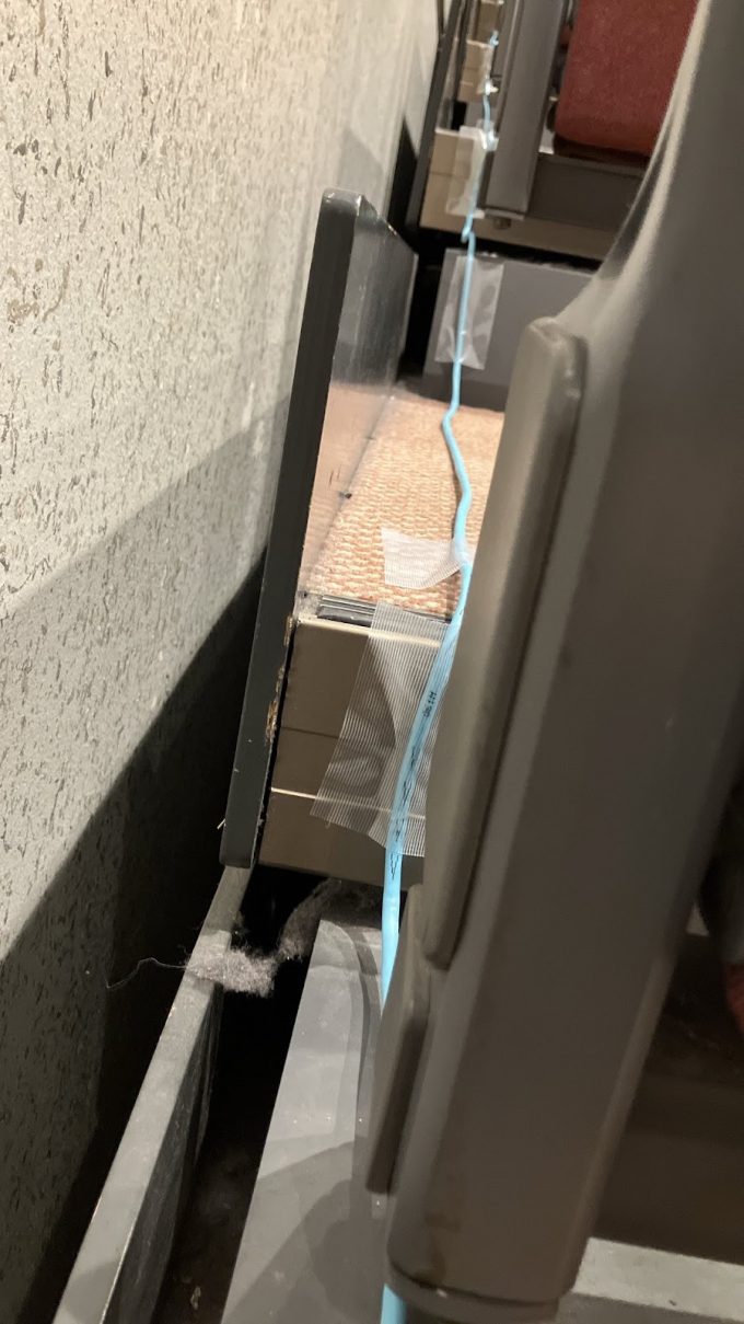1番のトラブルは今回の会場ネットワークの上流となるONUの設置場所を下手側だと思っていたのですが、実際は上手側だった点です。ここが予定から変更されたことにより20メートル程度のケーブルがもう1本必要になりました…幸い予備のケーブルとして長めのものを持ってきていたため、すぐに対応することができました。対処後すぐに敷設作業に入りました。先述の通り、会場の都合で床養生の配線のみだったため、人通りが多そうな箇所は避けたり、それが無理なら上に布を被せたりなどの対策を行いました。今回作成したケーブルの中で最も長かった50mのケーブルの敷設の際にケーブルが絡まってしまい、それを解くのには少々時間を必要としましたが、特に大きなトラブルも起きなかったこととAPチームの協力のおかげで、2時間もかからない程度で敷設作業は無事に終了しました。その後、BBチームやAPチームがそれぞれ構築作業を行いましたが、ケーブルに関する問題は特になかったため、その後の仕事としては時々見回りをする程度でした。