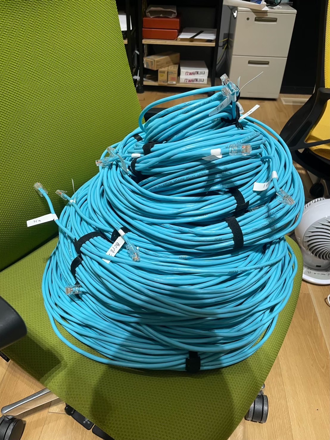 成端したケーブルは、その後断線していないかの判断のためにそのケーブルを使ってリンクアップするかを確認しました。この確認の際にリンクアップしなかったケーブルもあったので、当日のトラブルを避けるためにもこの確認は意味があるのだなと実感しました。