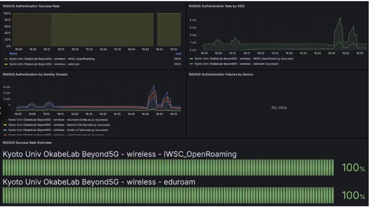 今回の会場Wi-Fiは、Cisco Merakiを京都大学からお借りして構築しました。eduroamとOpenRoamingの提供は京都大学岡部研究室様と株式会社Local24様にご協力頂きました。