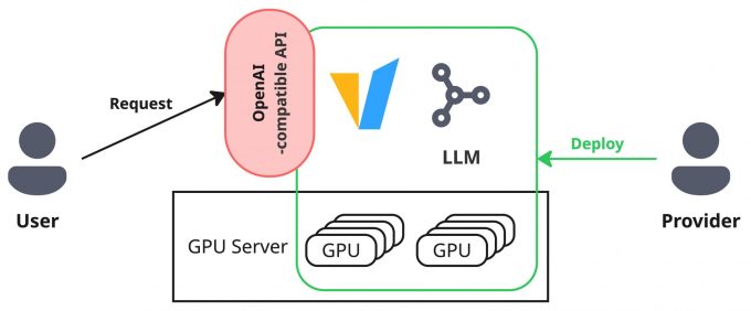 LLMそれ自体は学習済みのモデルでしかないため、我々が想像するサービスにするためにはフレームワークが必要になります。またこれらのフレームワークは単純にLLMをサーブする以上に、より効率的な推論処理を行うための最適化技術がサポートされていることが多いです。これらのフレームワークとしては現在様々なものが存在していますが、今回はその中でも業界のデファクトスタンダードの地位を確立しつつある、vLLMと呼ばれるソフトウェアを取り上げることにします。