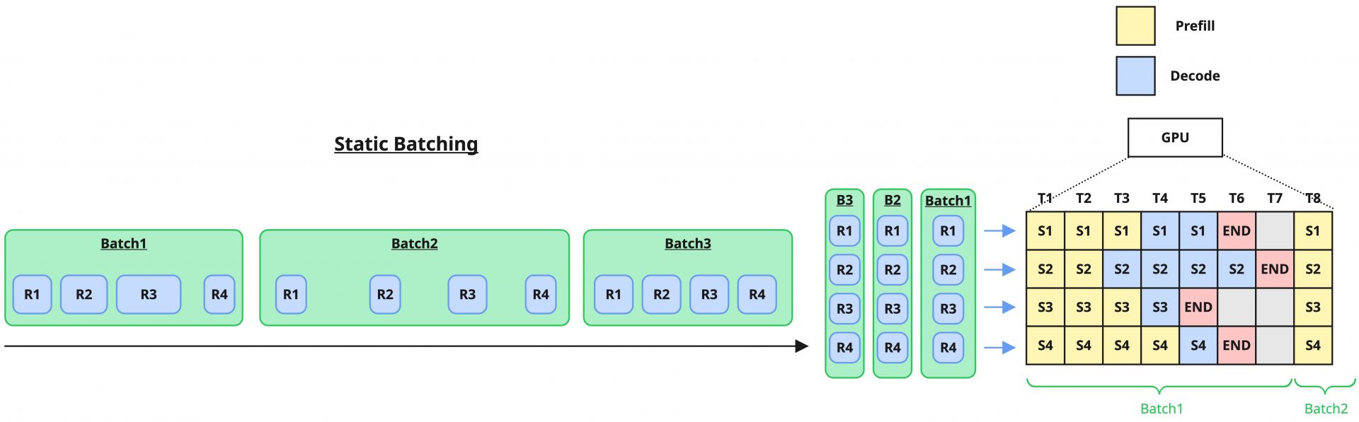 具体的にこのPrefillやDecodeの処理はGPU上で実行されますが、vLLMをはじめとする推論フレームワークはユーザーのリクエストをバッチ化してGPU上で効率的に処理する機能をサポートしています。以降では、このバッチ処理について説明しつつ、これが抱える課題について整理します。