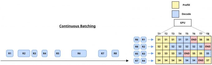 この方式は従来のバッチ処理のように特定リクエストの完了を別のリクエストが待機することがなくなるためLatencyが改善され、さらにGPUのリソース利用効率も最大化を狙うことができる、LLM推論ワークロードにフィットしたバッチ戦略になります。