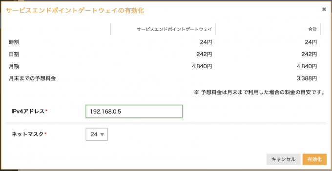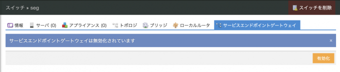 詳細画面のサービスエンドポイントゲートウェイタブから有効化をクリックします。