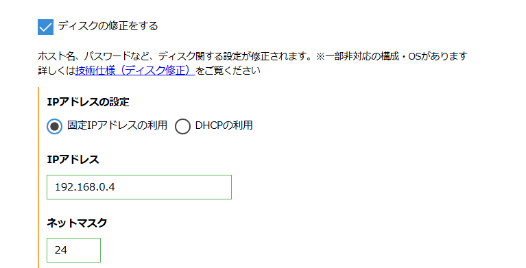 IPアドレスを入力します。この例では192.168.0.5を指定しています。これが次のステップで起動する予定の、このスイッチに接続する仮想サーバがオブジェクトストレージにアクセスする際のIPアドレスになります。IPアドレスを入力したら有効化をクリックします。
