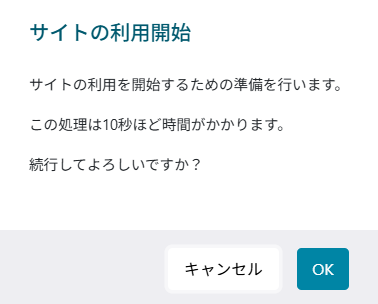 石狩第1サイトを選択し、 利用開始ダイアログに対してOKをクリックします。