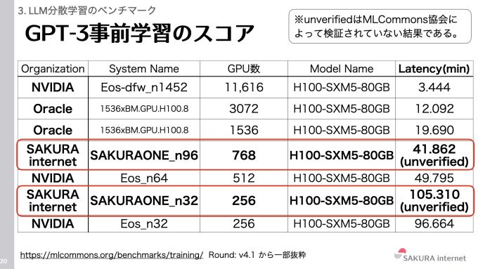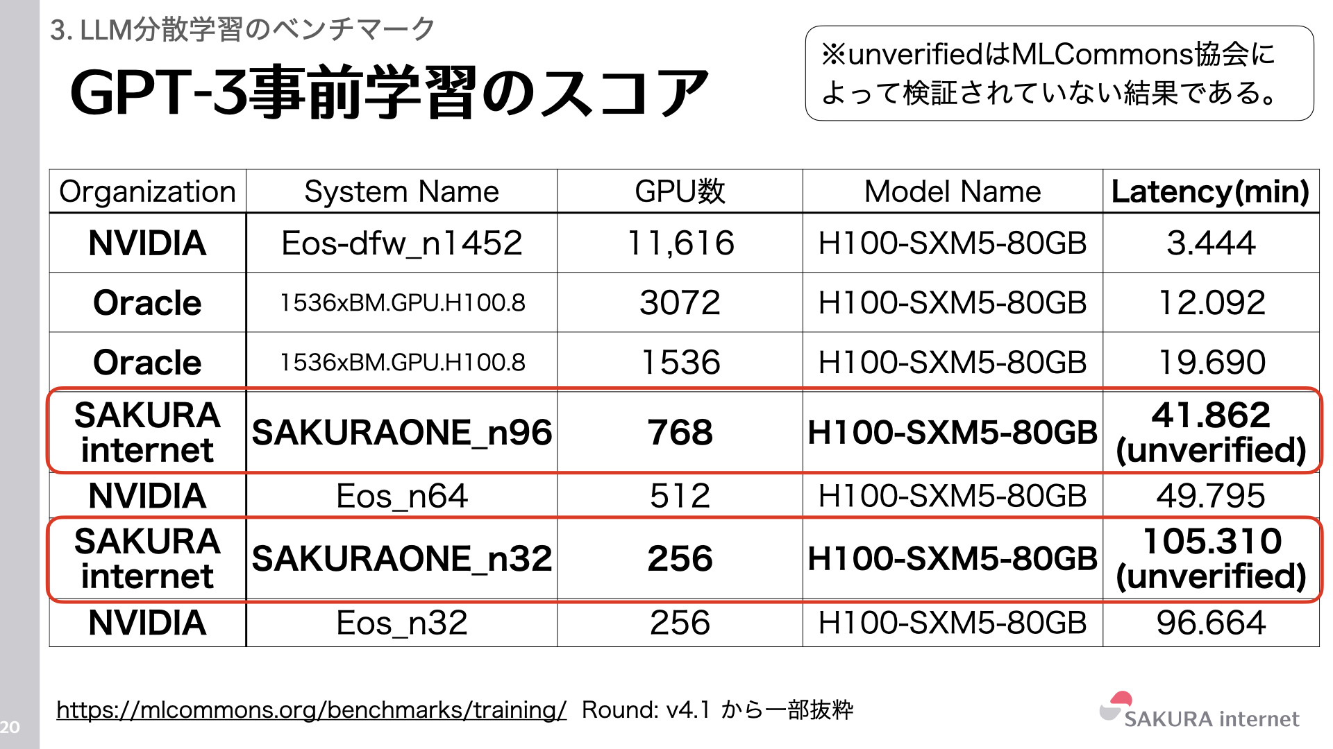 注: 本稿で紹介するさくらONEにおける測定結果は非公式なものであり、MLCommons Associationによる検証を受けていない(unverified)点にご留意ください。