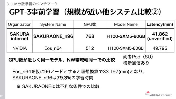 AIスパコン「さくらONE」のLLM学習ベンチマークによる性能評価