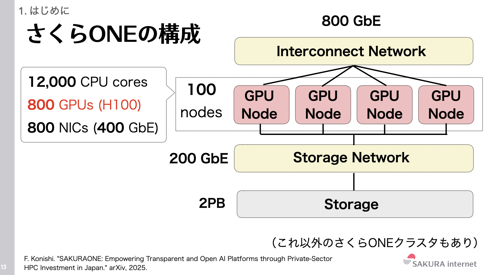 • バックエンドネットワーク: 800 GbE (RoCEv2) / SONiC OS