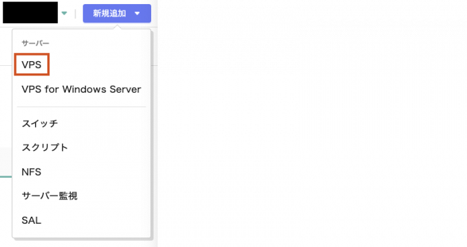 さくらのVPS のコントロールパネル にログインし、「新規追加」から 「VPS」 を選択します。