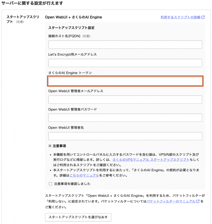 スタートアップスクリプト 「Open WebUI + さくらのAI Engine」 について