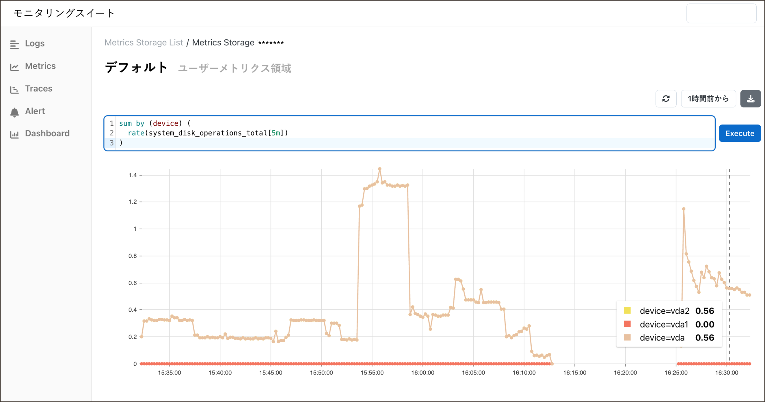 - 保存先:(メトリクスストレージのユーザ領域)