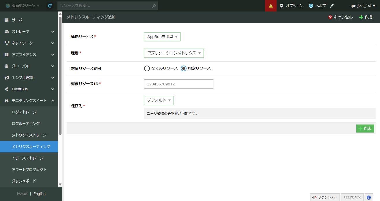 モニタリングスイートを利用する際には、ログ・メトリクス・トレースごとにストレージを追加します。ログストレージ・メトリクスストレージには、ユーザ領域とシステム領域を作成できます。