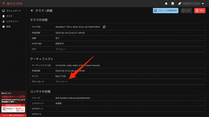 sudo docker push EXAMPLE.sakuracr.jp/openvoice:latest