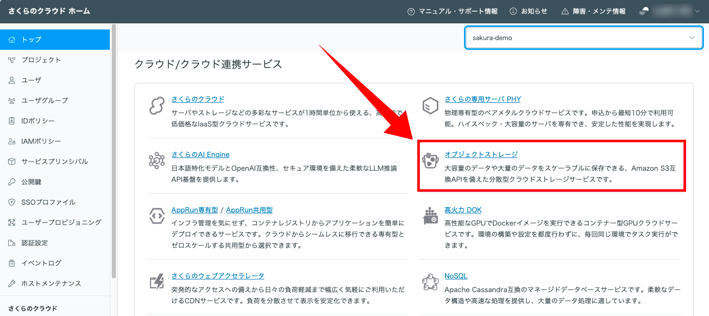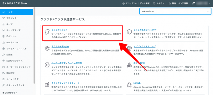 さくらのクラウドのホームに戻り、 さくらのクラウド を選択します。