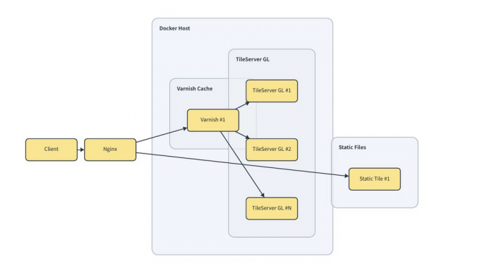 技術スタックとしては、タイル生成にTileServer GL、キャッシュにVarnish Cache、配信にNginx、モニタリングにPrometheusとGrafanaを使用しています。