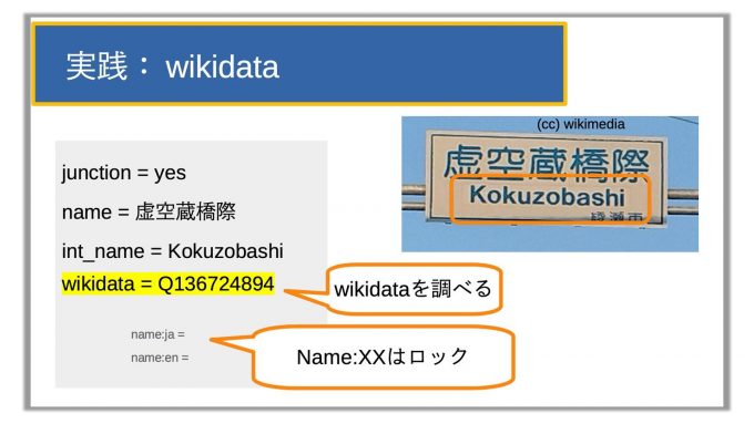 - 各言語ごとのタグがないときのためのフォールバックとしてname:en(英語の名称)を設定することについて是非の議論がある