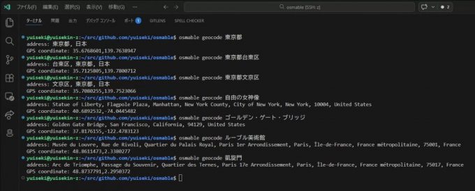 osmableは、OSM関係のAPIを呼び出せるCLIユーティリティです。コマンドを入力すると、指定した地物の住所や位置情報が出力されます。応用としてAIエージェントが調べ物の道具としてosmableを使う方法も紹介しました。