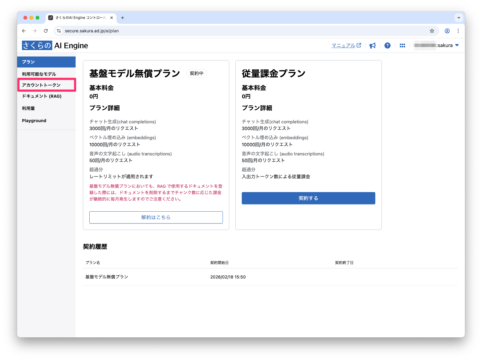 さくらのAI Engineで「基盤モデル無償プラン」を契約する