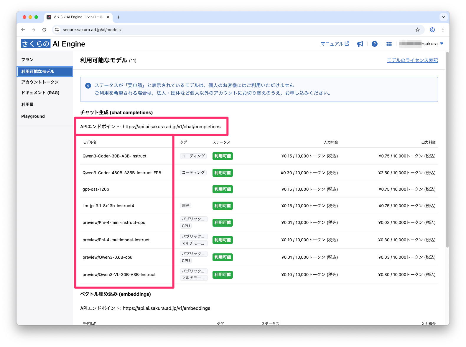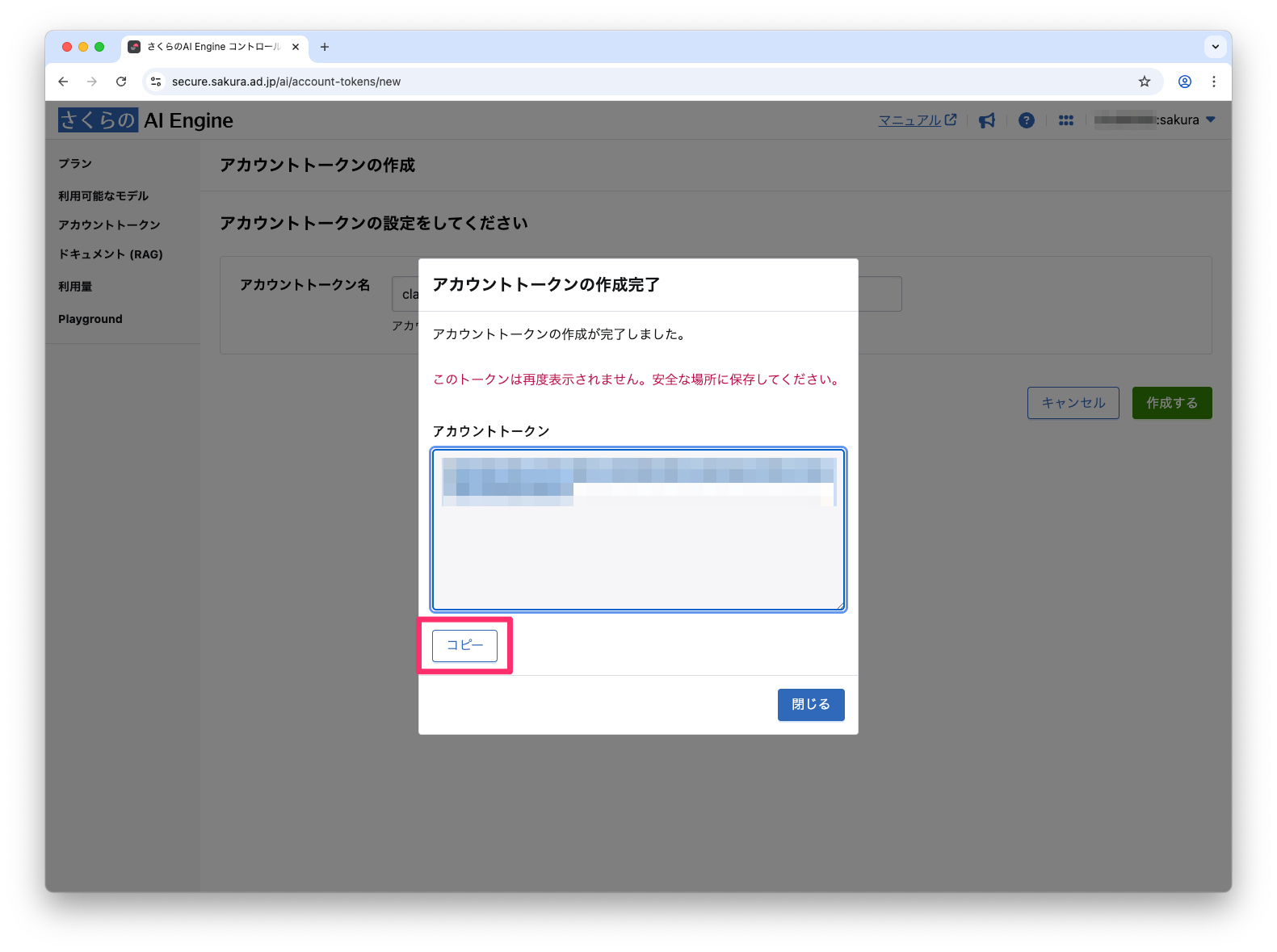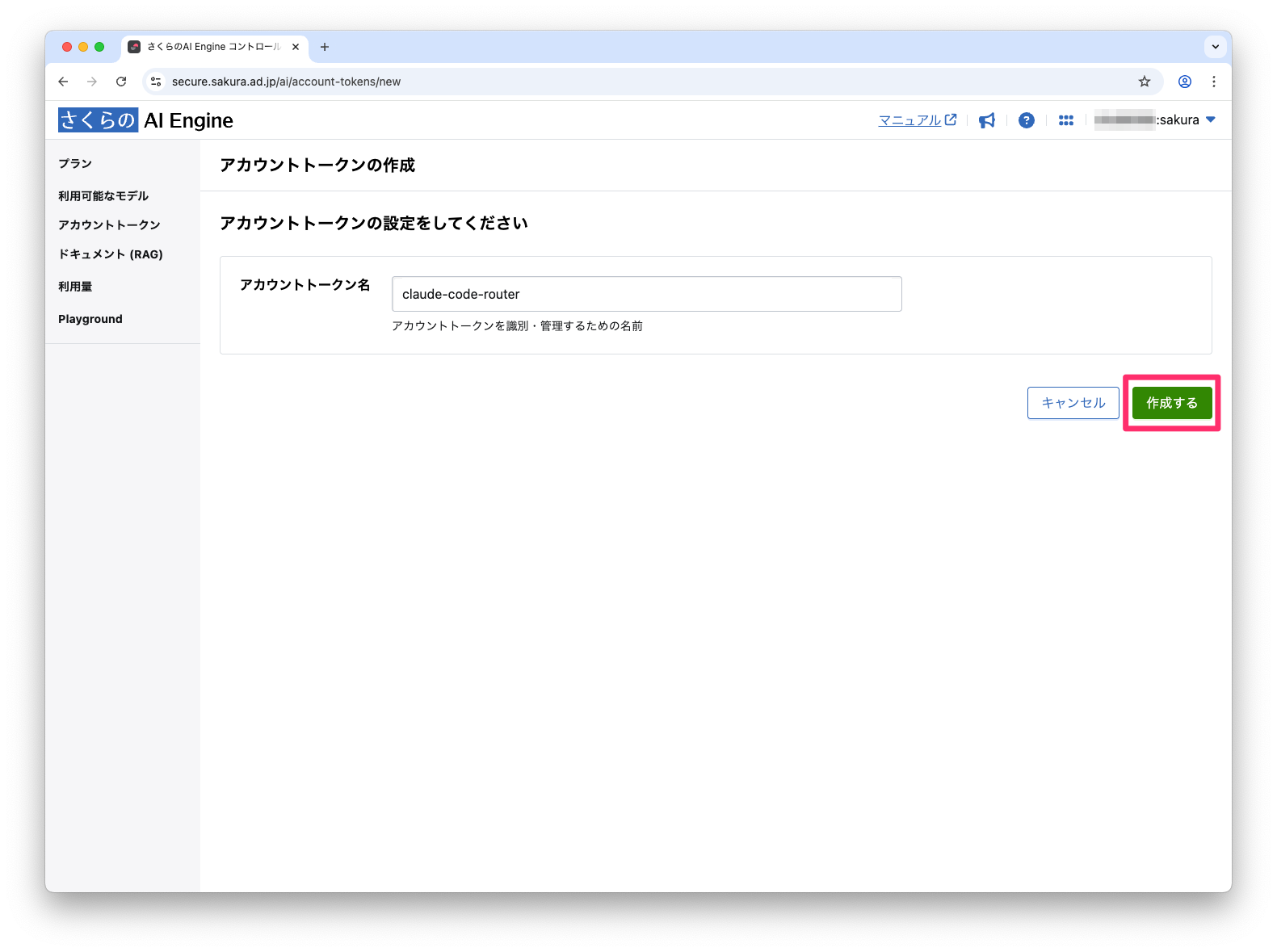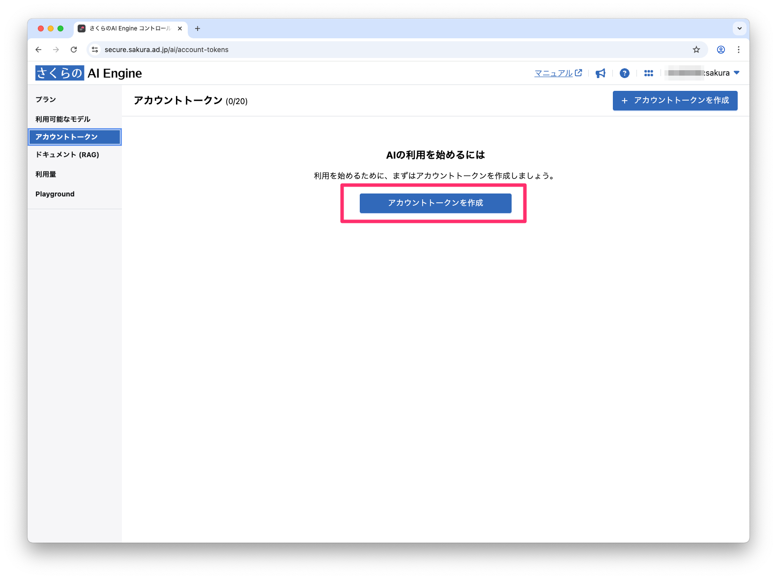 さくらのAI Engineでアカウントトークンを作成する