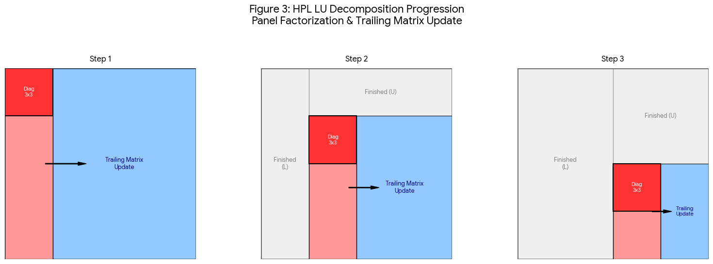 - Step 1: 左上の最初のNBパネルを処理 → 残りの大きなTrailing Matrixを更新。