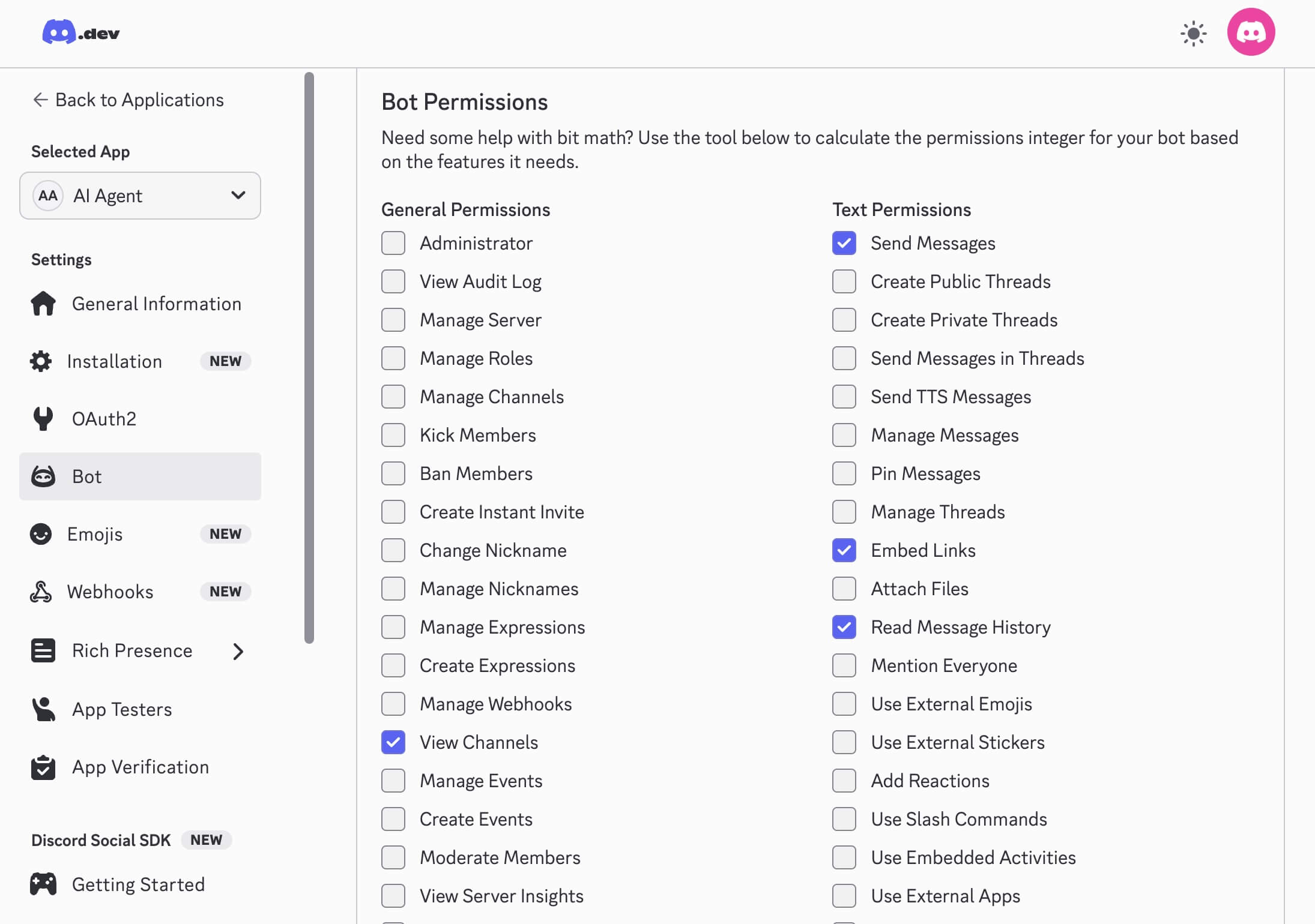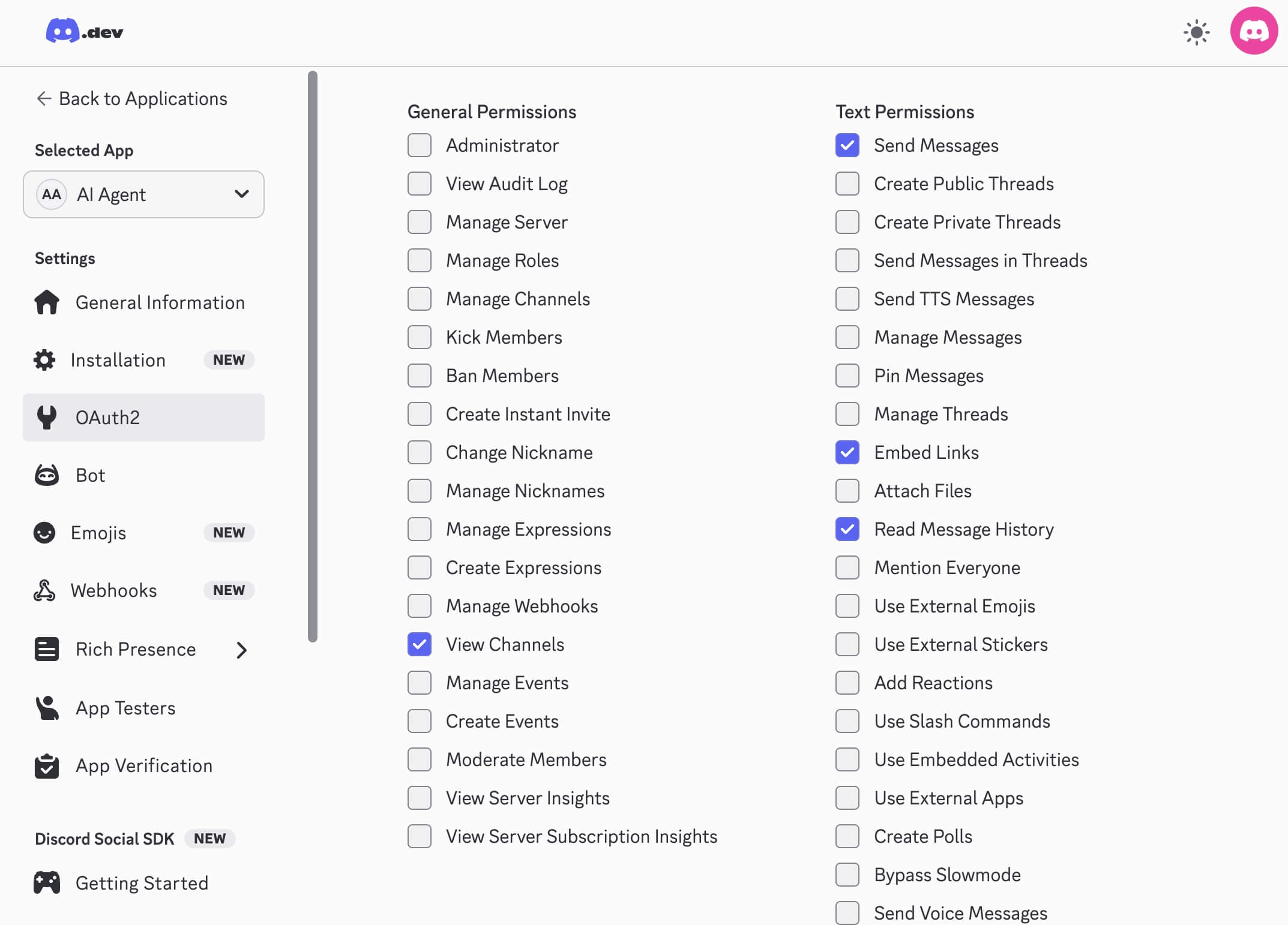 開発者ポータルでAIエージェント向けのDiscordのセットアップを行います。Discordのアカウントを持っていない方は手順に従って作成してください。