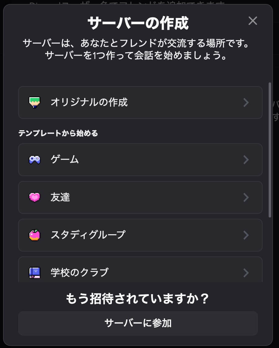 サーバーの目的などを設定します。(こちらは好きなものを選択してください)