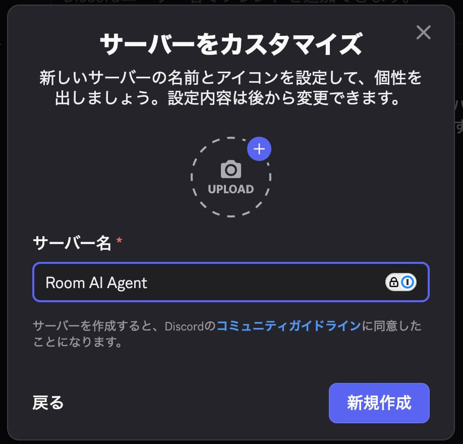 名前を設定して作成を完了します。(本記事ではRoom AI Agentとします)