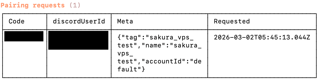 Discord側からOpenClawへメッセージを送るには、ペアリング(承認) を行う必要があります。