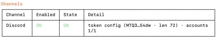 Channelsの項目で下記のようにDiscordがOKと表示されていれば接続自体は成功しています。