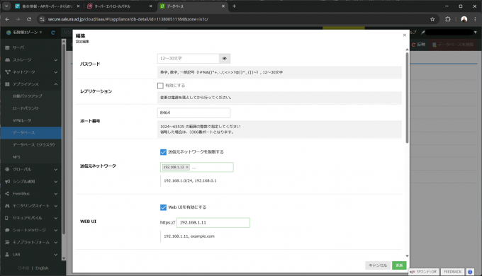 データベースのWeb UI有効化