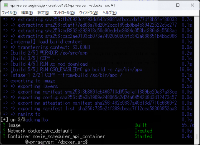 実際に構築します。以下のコマンドを実行します。