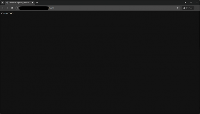/healthで疎通できるようにサーバーロジックを設定しているので、念のためブラウザで疎通確認します。