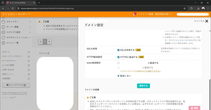 さくらのVPSの時同様にサブドメインを発行しました。ただし、今回はもう1手間加えます。HTTPS対応です。