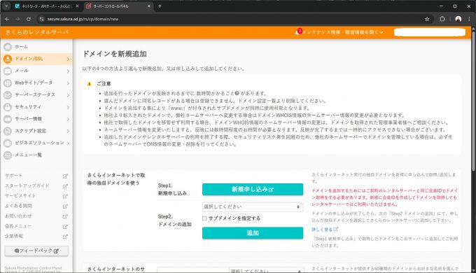今回はレンタルサーバで筆者が契約しているドメインのサブドメインを発行し、レコード設定もレンタルサーバのコントロールパネル上で行いました。