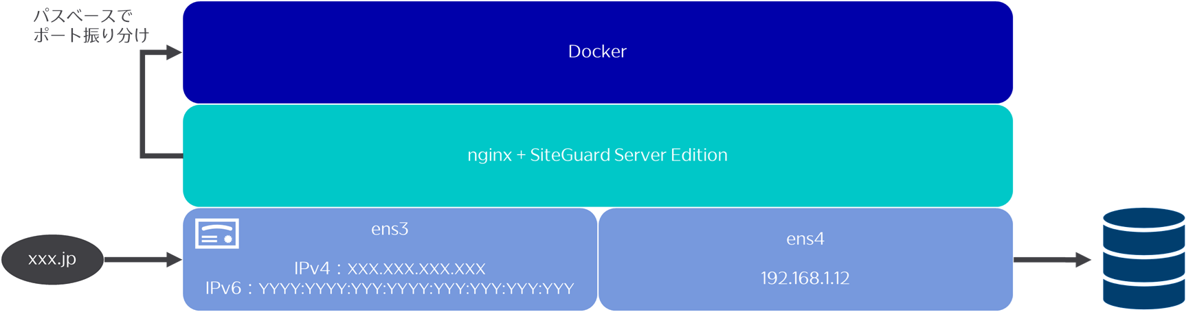 HTTPS対応とnginx+SiteGuard Server Editionのインストールも続けて行いました。nginxでHTTPSリクエストを受け付け、パスベースでDockerコンテナのポートに振り分けるような設定も行っています。