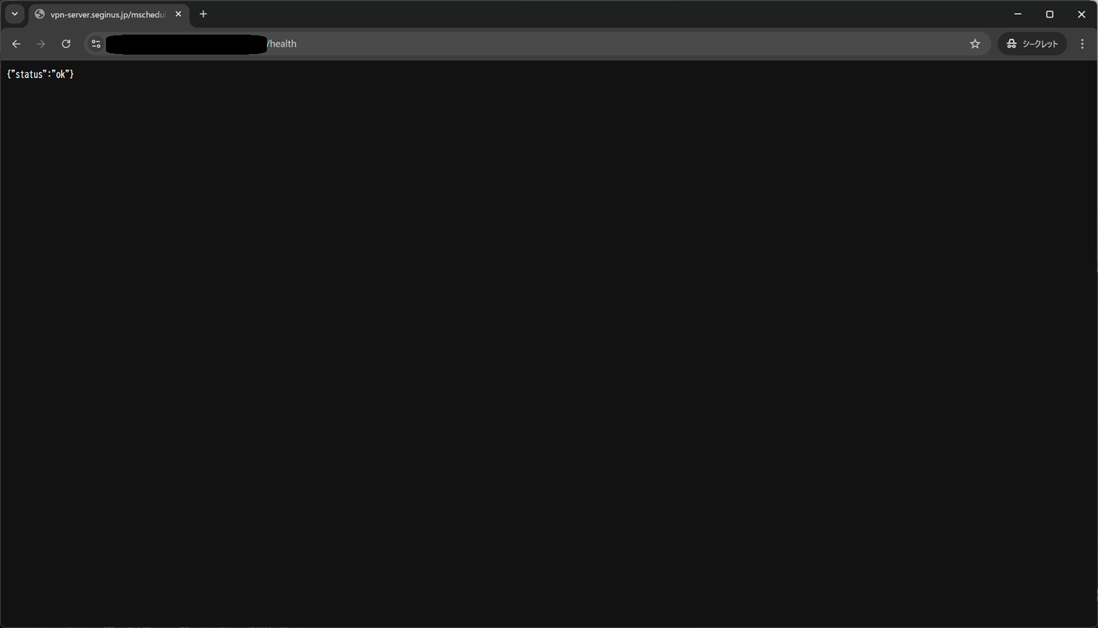 /healthで疎通できるようにサーバーロジックを設定しているので、念のためブラウザで疎通確認します。