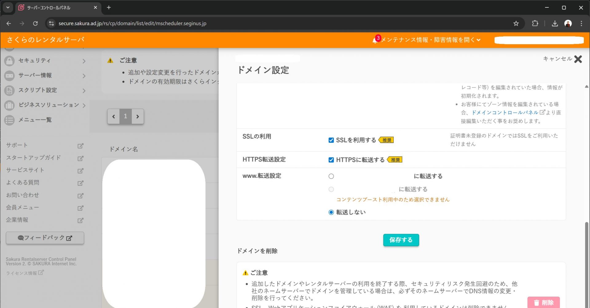 さくらのVPSの時同様にサブドメインを発行しました。ただし、今回はもう1手間加えます。HTTPS対応です。